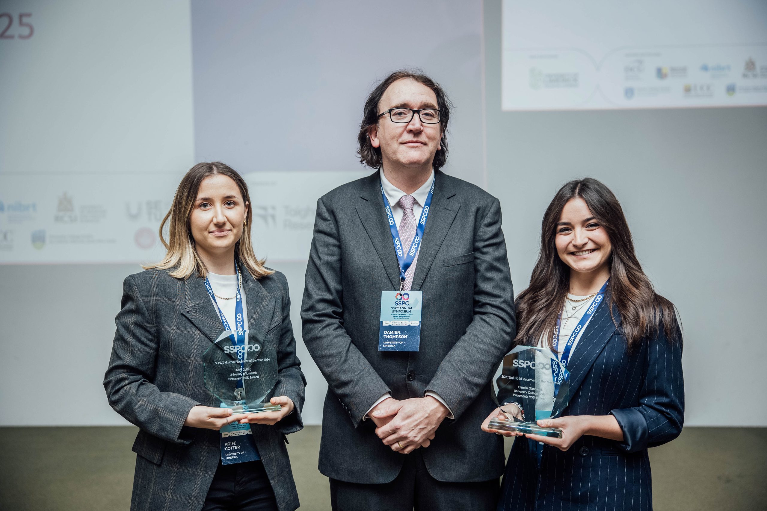 Claudia Giannachi, University College Cork (UCC), and Aoife Cotter, University of Limerick (UL), win joint placement award for work done at MSD Brinny, Cork